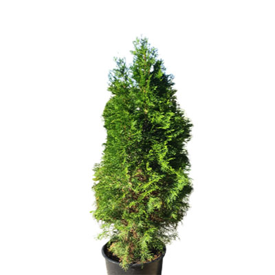 Conifer Emerald Green is a upright, narrow conifer with rich green foliage and a tight, columnar habit that makes it perfect for privacy screens, hedges, and property lines.