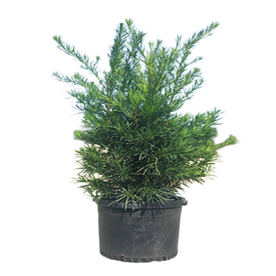 Podocarpus Macrophyllus 'Maki' is a upright evergreen shrub or small tree with dense, fine-textured foliage on vertical stems, ideal for tall hedges, privacy screens, and formal landscapes.